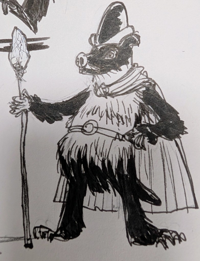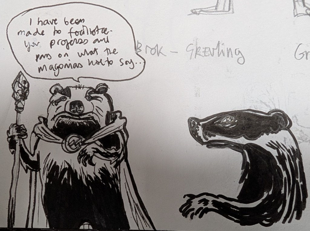 I’m doing some homework and writing/planning BL pt2 and suddenly had the need to generate a new character that the story gods decided had to exist… and low a behold the talking Badger Grévling Brok popped into being… Brok became necessary as I was developing the story it became clear Myrii needed an intermediary between the Magonians and her.
