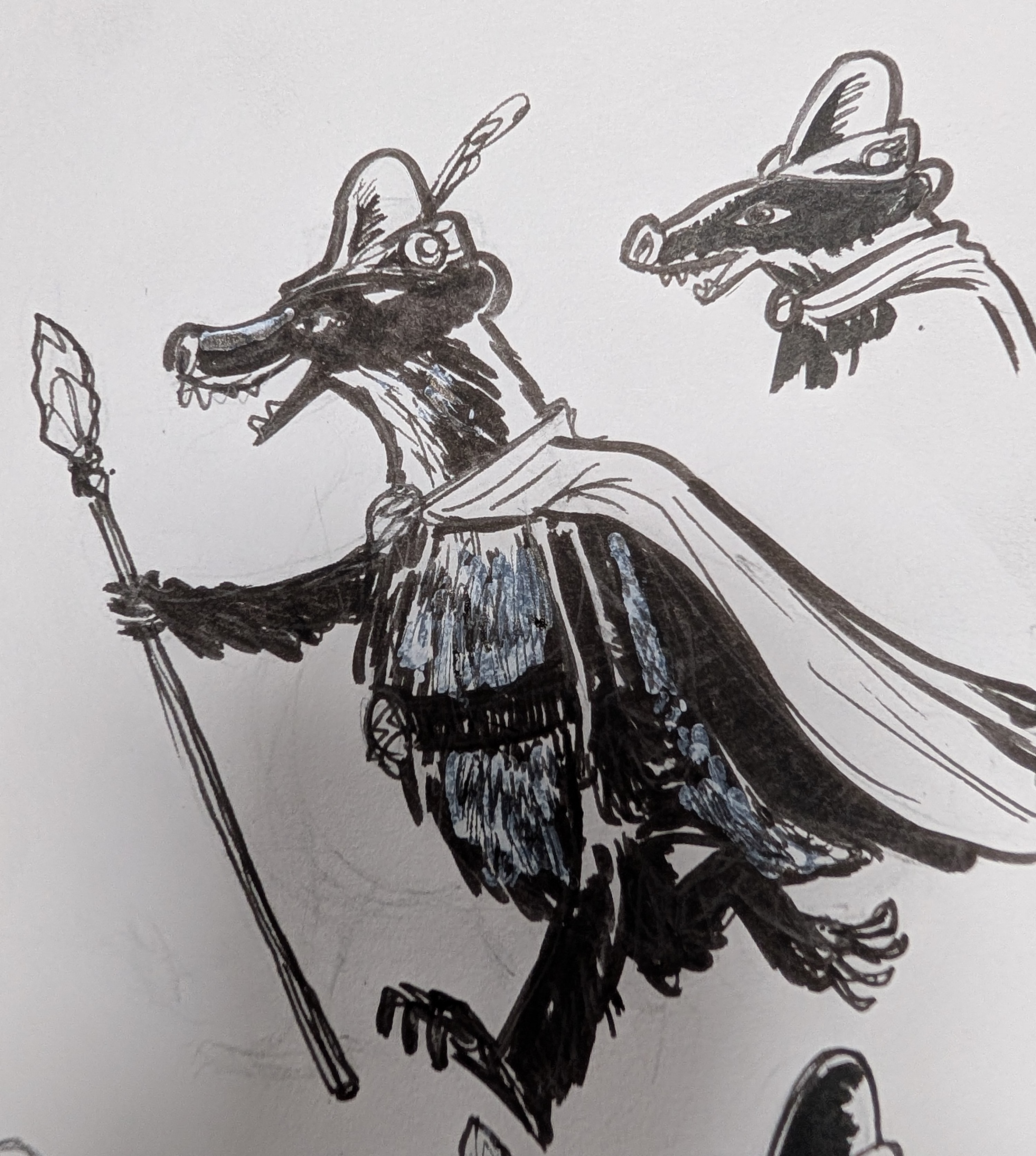 After a bit of doodling about I thought an animal character would be fun and can see where having a ‘Familiar’ for Myrii might really help with the narrative and just be loads of fun. I started from scratch and did consider some kind of cat but settled on a badger after thinking about an old supporting character that my old comics collaborator Andy Richmond created ‘Mr Brock’ who was a kind of guru and general beast of mystery encouraging the protagonists to ‘chew on this root… it will help’.
