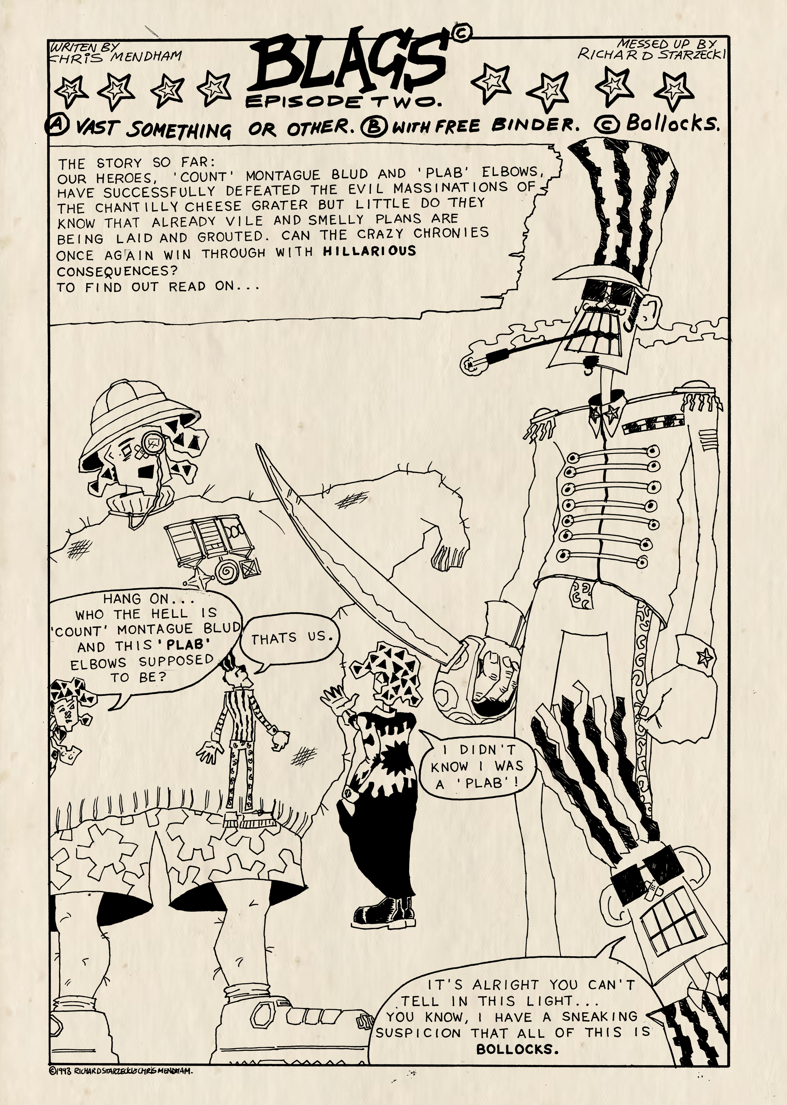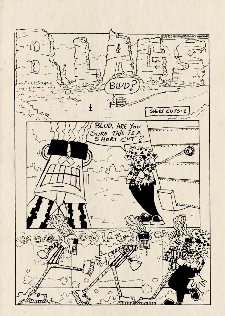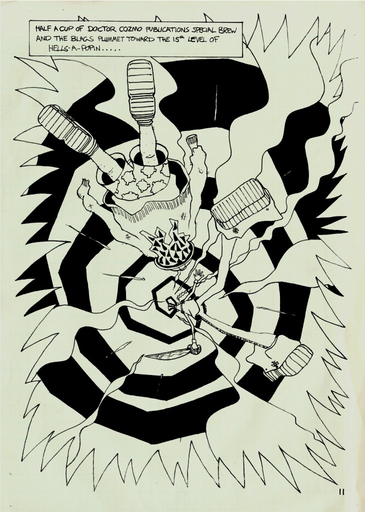“Recreational drugs, 2000AD and art colleges have much to answer for. Not because any of them are intrinsically bad, but because they encourage the production of tired, self-indulgent, cliché-ridden comics like Blags.” Vic Pratt, Zum! #10
