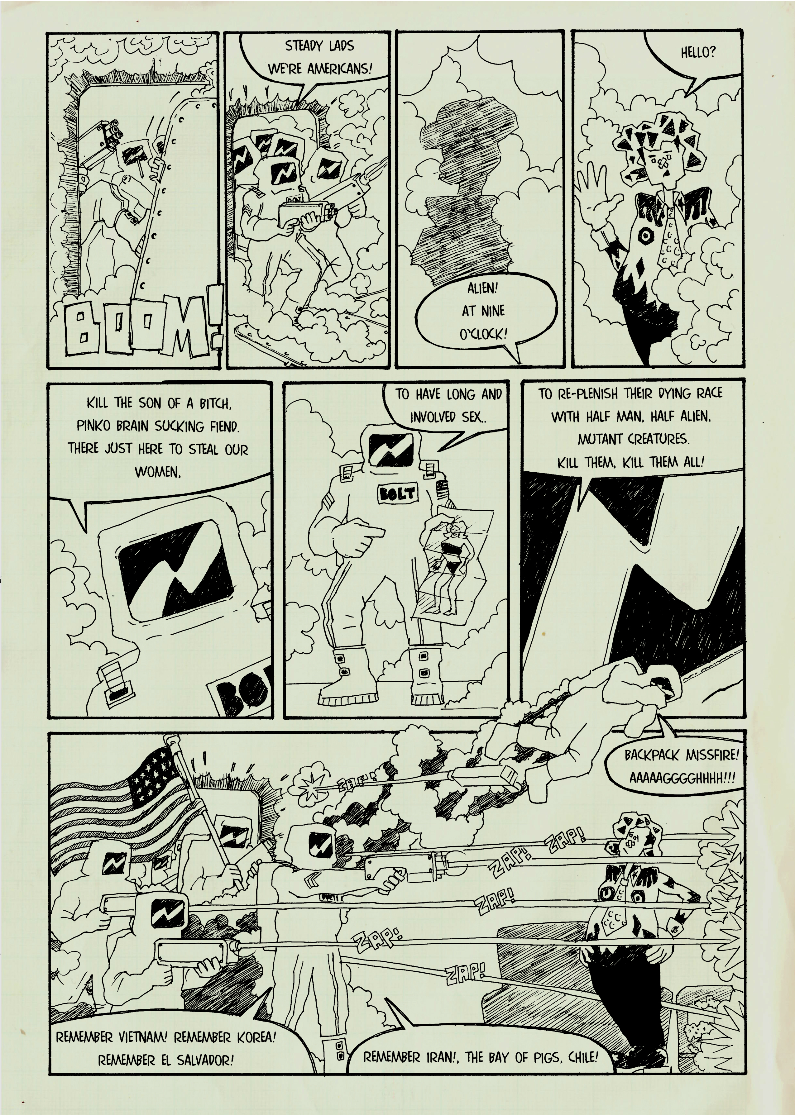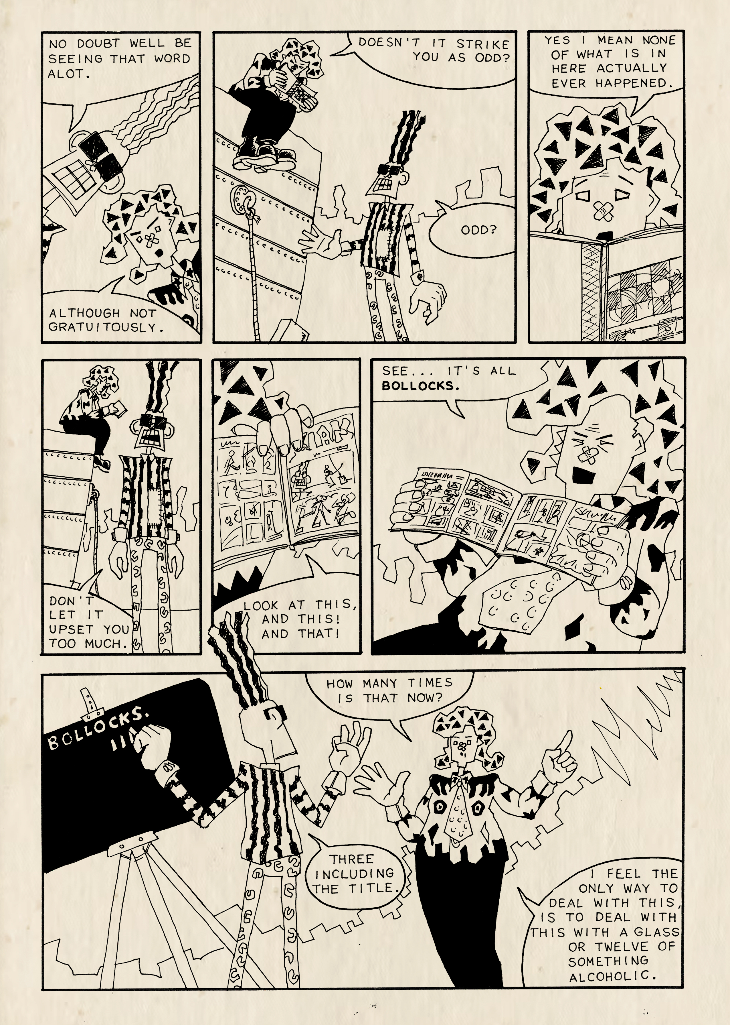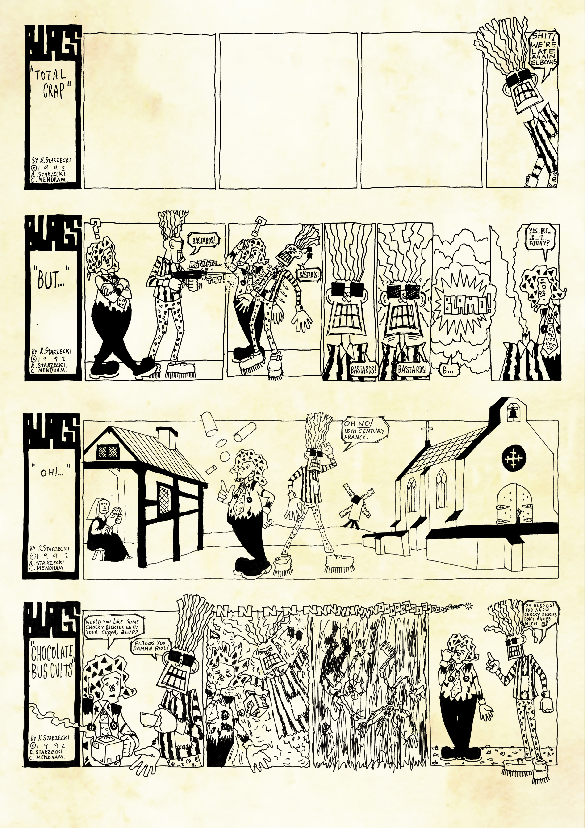 “Recreational drugs, 2000AD and art colleges have much to answer for. Not because any of them are intrinsically bad, but because they encourage the production of tired, self-indulgent, cliché-ridden comics like Blags.” Vic Pratt, Zum! #10
